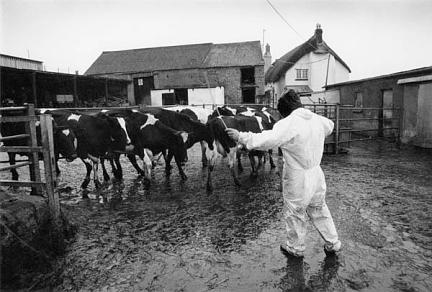 MAFF employee moving cattle.