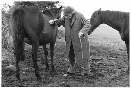 Dr. Duncan Fraser examining a pregnant mare, Moor Gate Farm, North Bovey, 1984