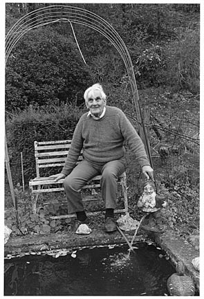Arthur Prouse and his rude gnome, Coombe, Scorriton, 1989
