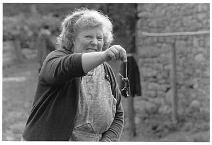 Ma Shillibeer with a drowned mouse! Bellever Farm, 1977