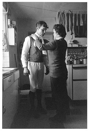 Will Hutchings dressing for Beagling, Dury Farm, Postbridge, 1977