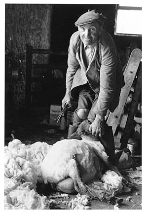 Arthur Brown hand shearing at Moor Gate, North Bovey, 1979