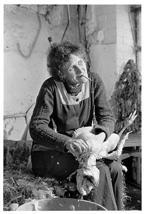 Daisy Bolt plucking turkeys, Chapple Farm, Gidleigh, 1980