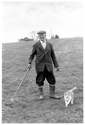 Louis Creber raking molehills, North Wonson Farm, Throwleigh, 1981