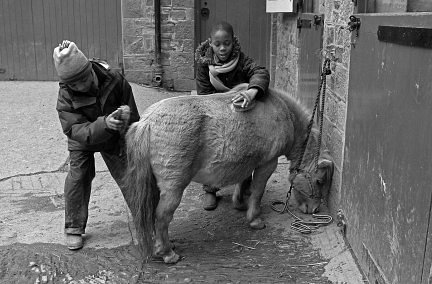 Grooming 'Spice', the Shetland pony, Nethercott, Iddesleigh, Devon 2006