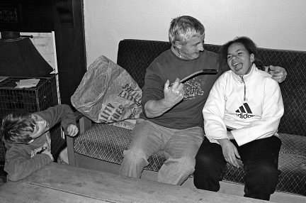 Tom Farley demonstrating the Bolus gun, Nethercott House, 2006