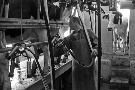 Brian Risdon milking the cows, Burrow Farm, Iddesleigh, Devon 2006